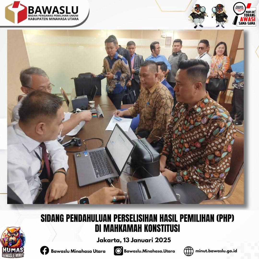 Anggota Bawaslu Minahasa Utara Simon Awuy selaku Koordinator Divisi Hukum menyampaikan dirinya hadir sebagai pemberi keterangan dalam perselisihan hasil pemilihan berdasarkan undangan Mahkamah Konstitusi.Menurutnya Sidang pendahuluan dalam perselisihan hasil pemilihan merupakan tahapan awal dalam proses penyelesaian sengketa terkait hasil pemilihan serentak tahun 2024 yang diajukan oleh salah satu pihak yang tidak puas dengan hasil pemilihan.